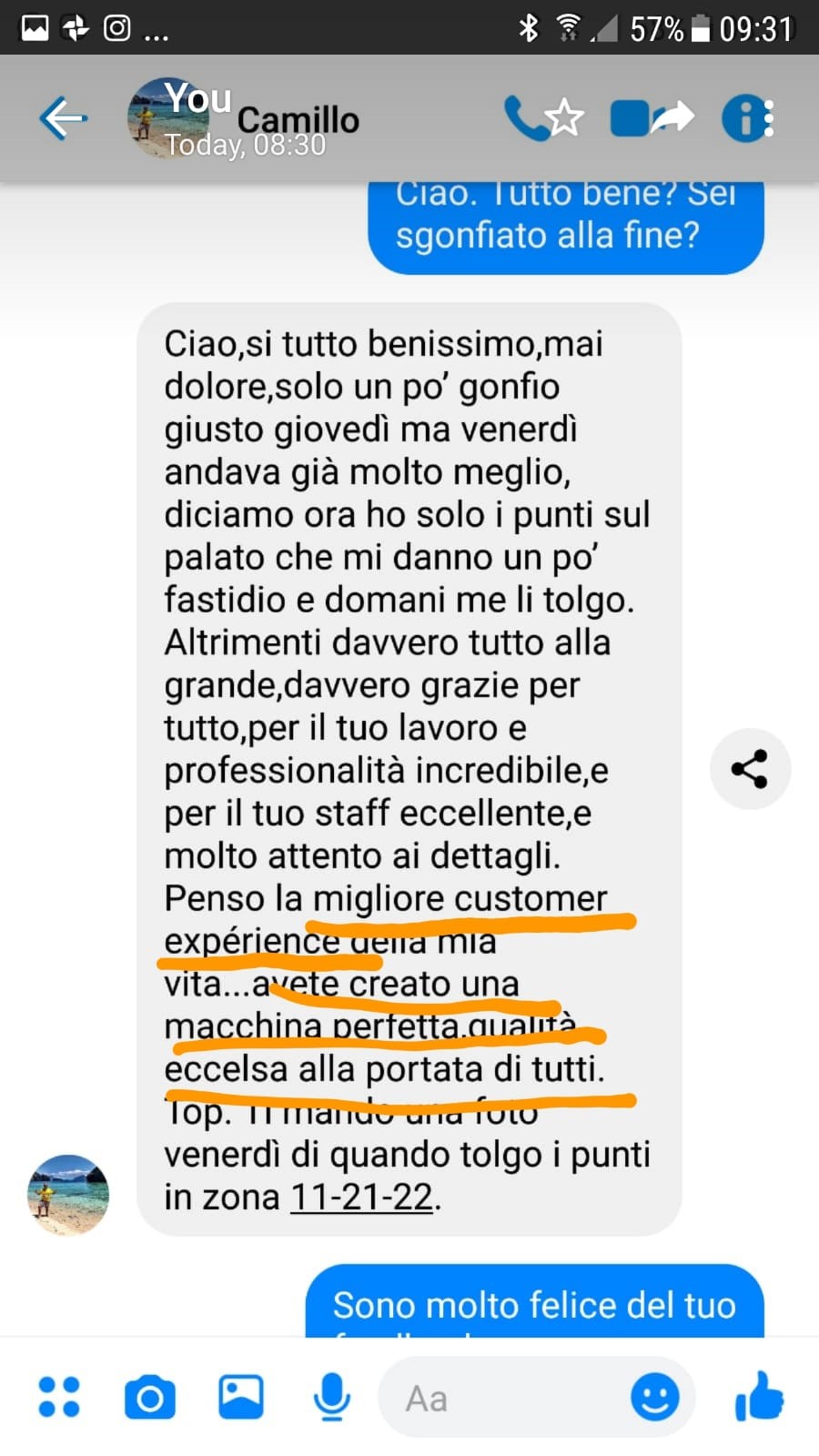Prendiamo ad esempio Camillo che, dopo essersi fatto operare da Federico, nei giorni seguenti gli ha mandato questo messaggio su Whatsapp: