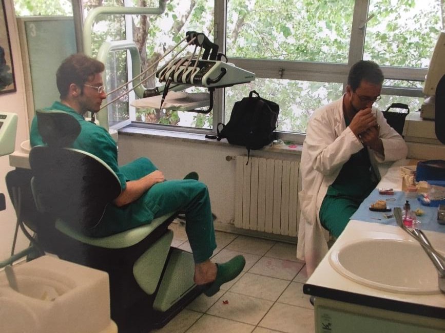 Ora abbiamo 36 anni, lavoriamo su 12 riuniti, ci avvaliamo della preziosissima competenza di altri 5 odontoiatri (rigorosamente impiegati nello studio a tempo pieno), 5 igienisti ( anche loro rigorosamente impiegati nello studio a tempo pieno) e 28 dipendenti.