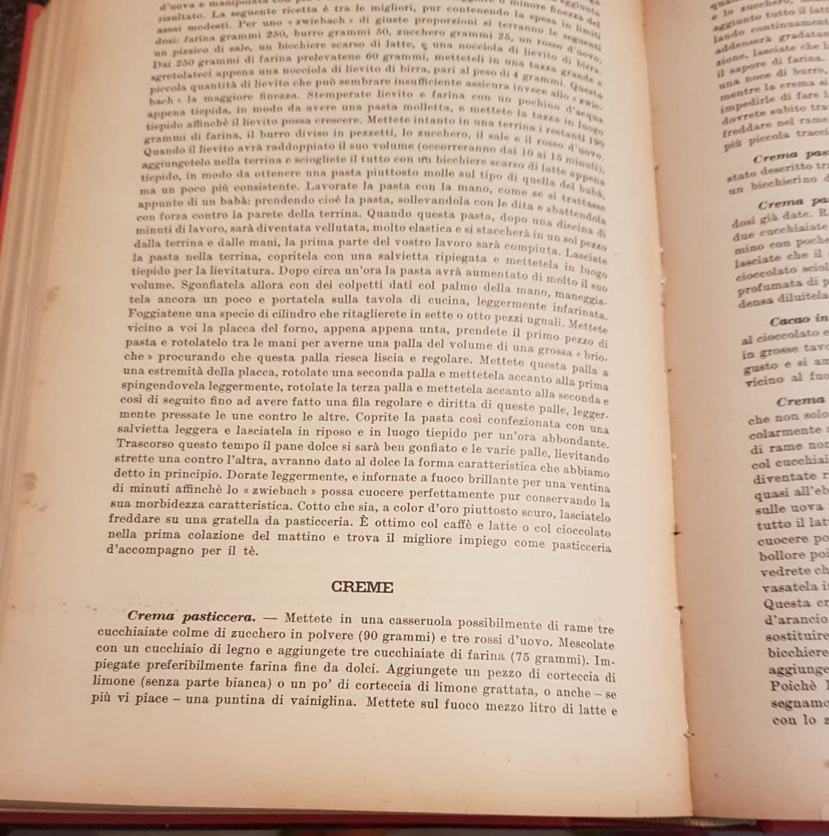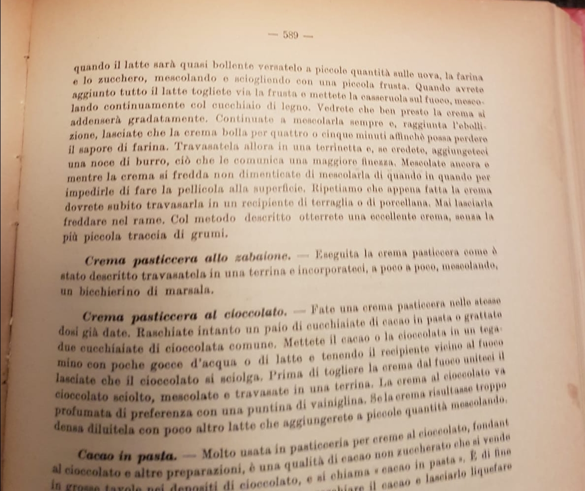 Ma vediamo cosa diceva il librone della mia prozia sulla crema pasticcera, sono certo che siano le stesse cose che dice tua madre.