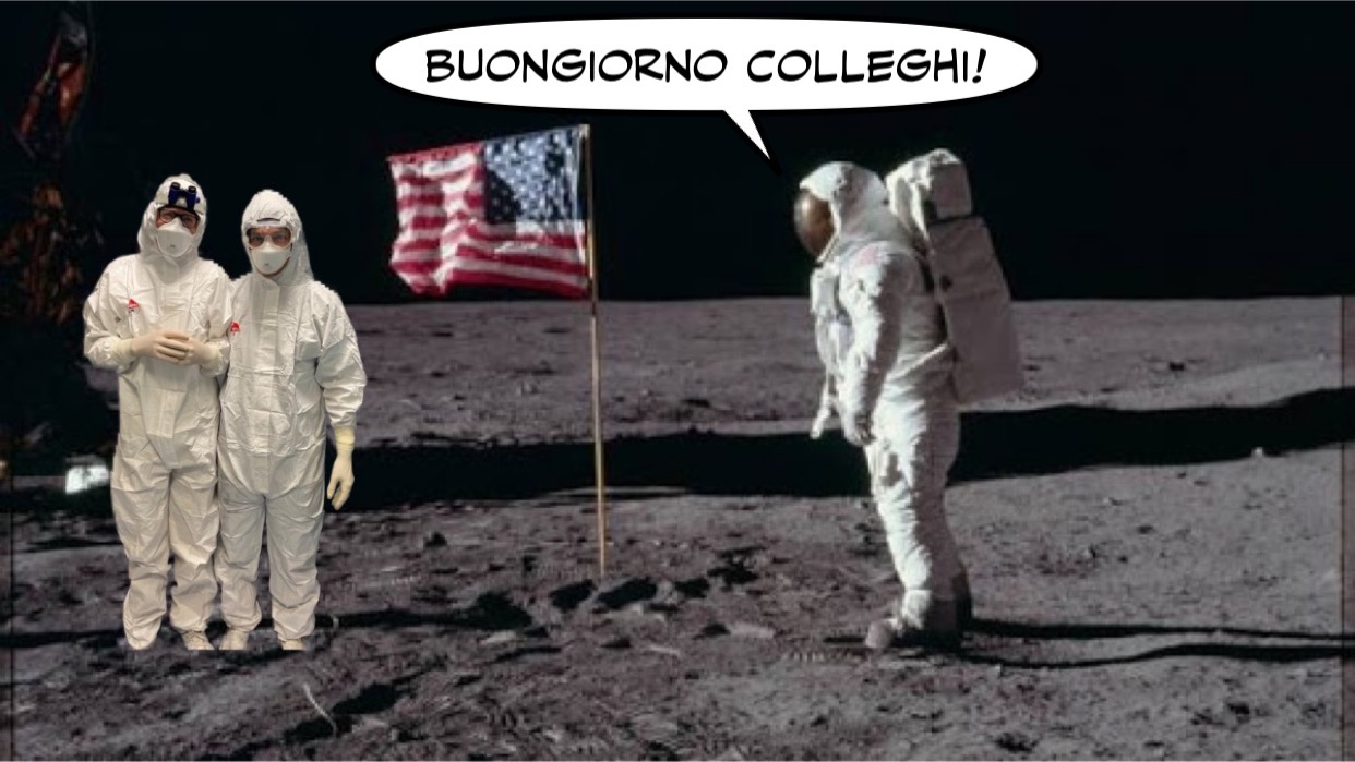 Ci mette pure uno sberleffo per chi in questi giorni si veste da Neil Armstrong.