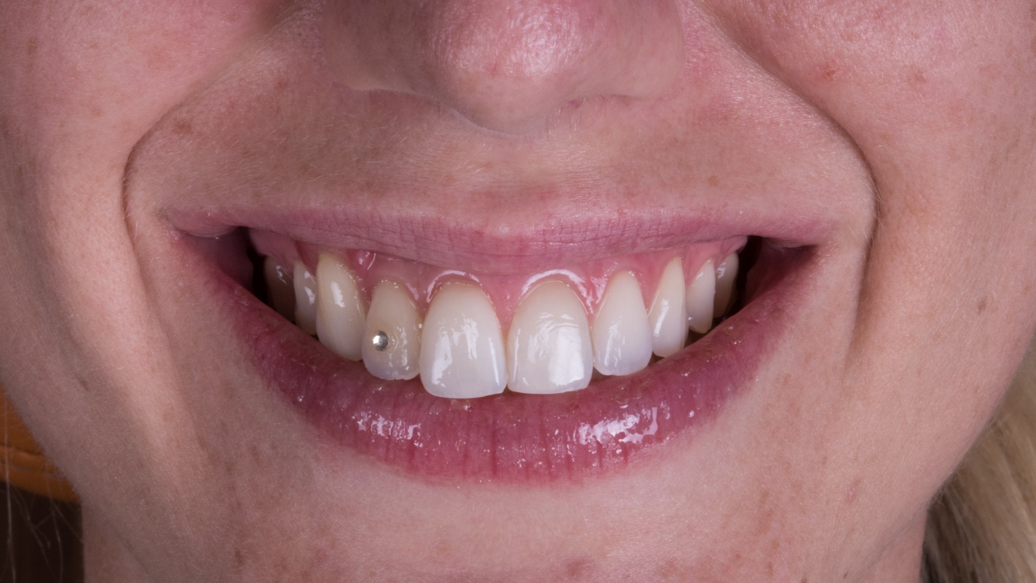 Se invece fai un innesto su letto vascolarizzato puoi farlo stretto quanto vuoi. Per avere il risultato esteticamente migliore lo faremo alto quanto la banda di tessuto cheratinizzato presente sui denti adiacenti.